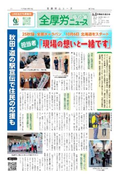全厚労ニュース(25年10月号)全国キャラバン 北海道よりスタート 全厚労ニュース(25年10月号)ダウンロードはコチラ 目次(↓のタイトルクリックで記事ページに移動します。一部未リンク有) ・25秋闘・全国キャラバン 10月6日 北海道をスタート ・医療機関の厳しさ認識 第一次財務省要請行動 ・もう限界!医療・介護・福祉の現場を守れ! 読者の声・クイズこたえ投稿フォーム
